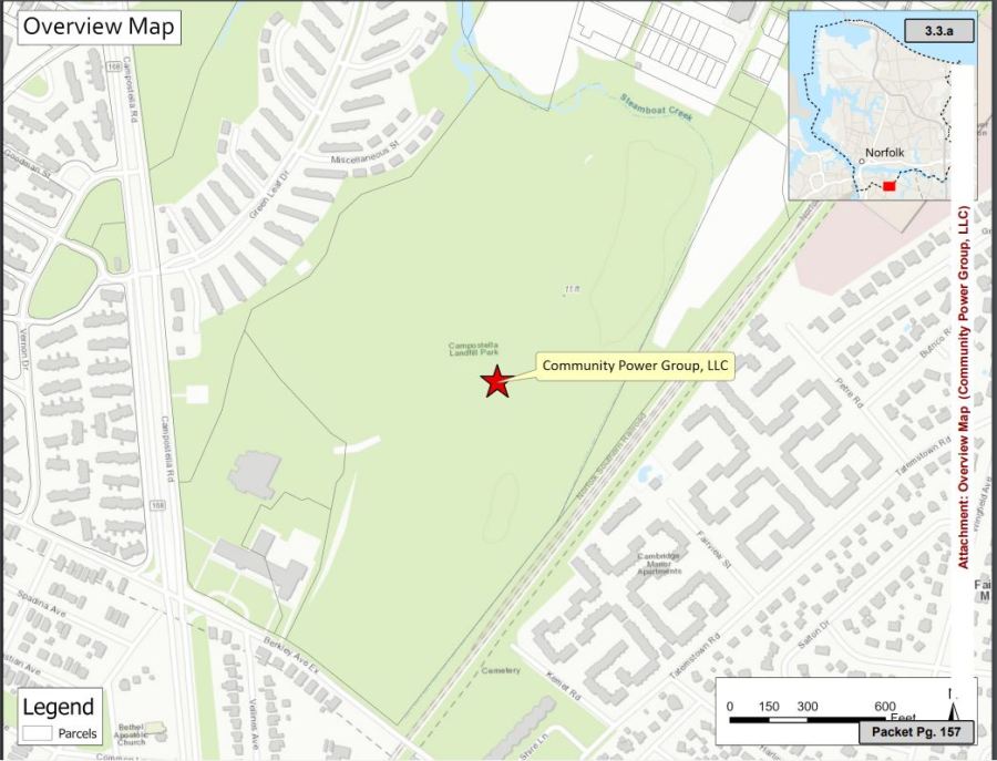 Washington, D.C.-based Community Power Group, LLC is behind the development. Last year they were awarded a bid to negotiate a long-term land lease with the city, which was looking for a “land use solution that has significant environmental benefits.”