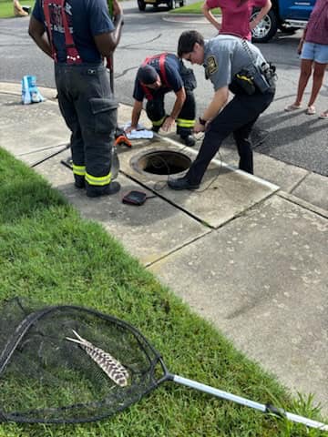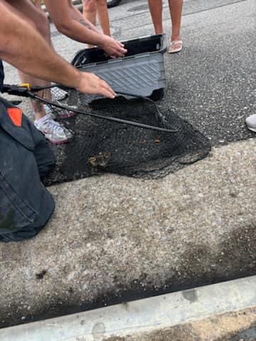 Crews from Ladder 11 arrived to the scene and were able to get the ducklings down to the next manhole cover, and were able to retrieve the ducklings using a net provided by animal control.