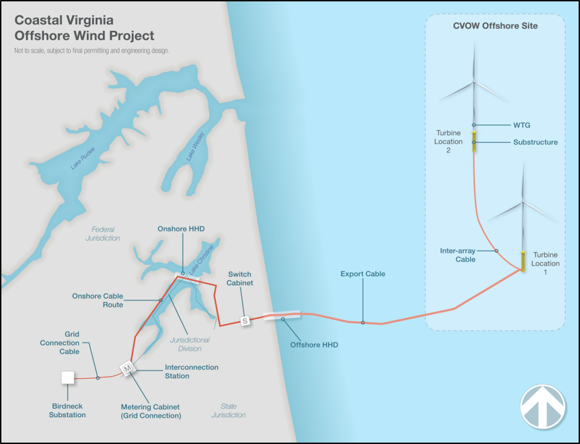 On May 25, the first turbine foundation was safely and successfully installed on the ocean floor 27 miles off Virginia Beach, and on May 30, the second turbine foundation was installed. The turbines themselves were set to be installed on the foundations later in June.