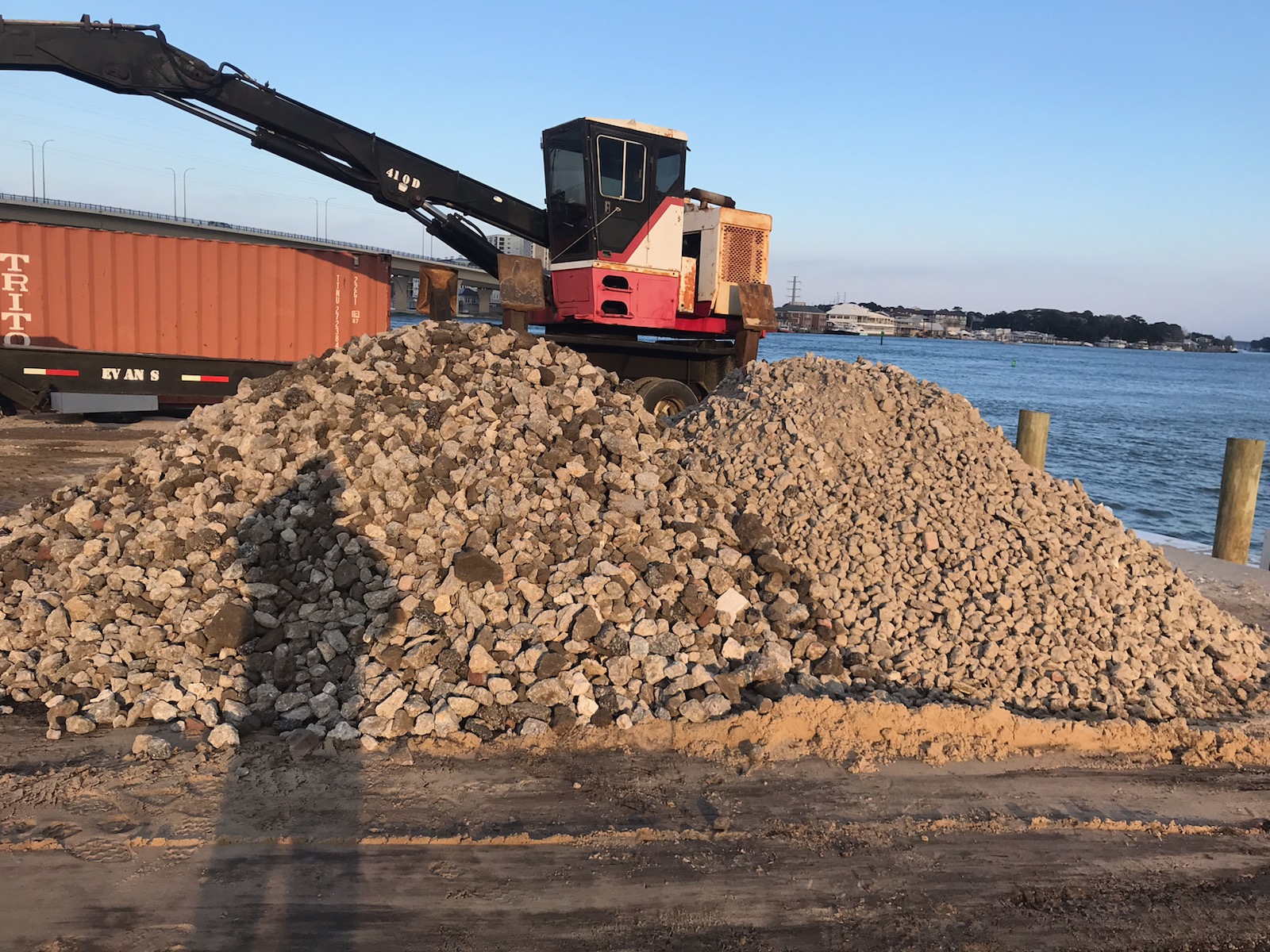 The new reef will be concrete-based in the Pleasure House Creek. Over 5,000 tons of crushed concrete will be blown from a barge into the water at great force to build a foot-high reef on the river bottom.