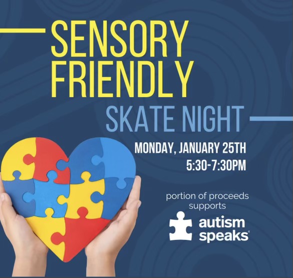 The Sensory Friendly Skate Night is at Haygood Skating Center in Virginia Beach tonight from 5:30 – 7:30. A portion of the proceeds from the event will go to Autism Speaks. Wheelchairs are welcome and parents can walk on the rink floor.
