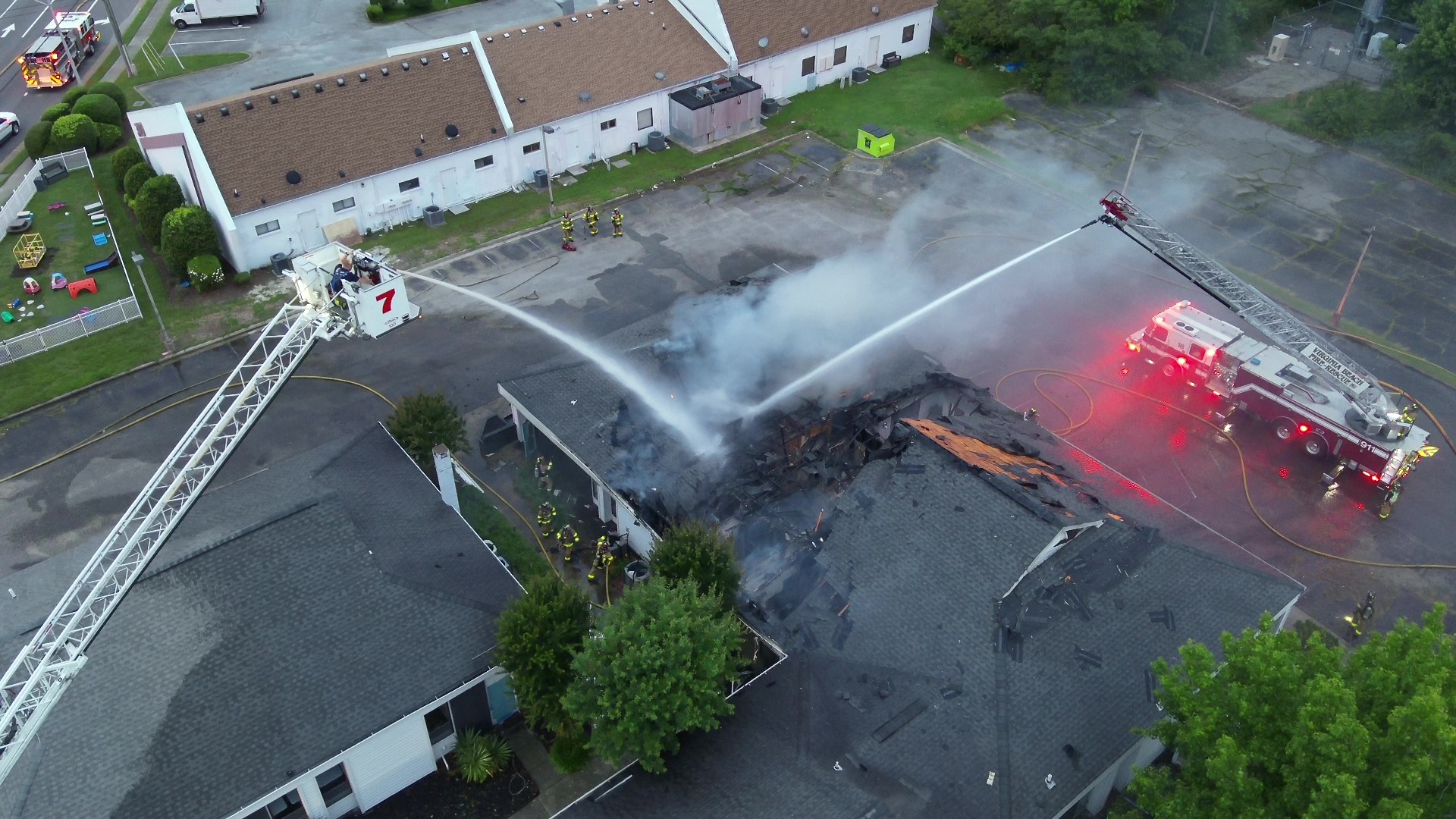 VIRGINIA BEACH, Va. (WAVY) — A Virginia Beach firefighter suffered a minor injury while battling large fire at a business complex early Monday morning.