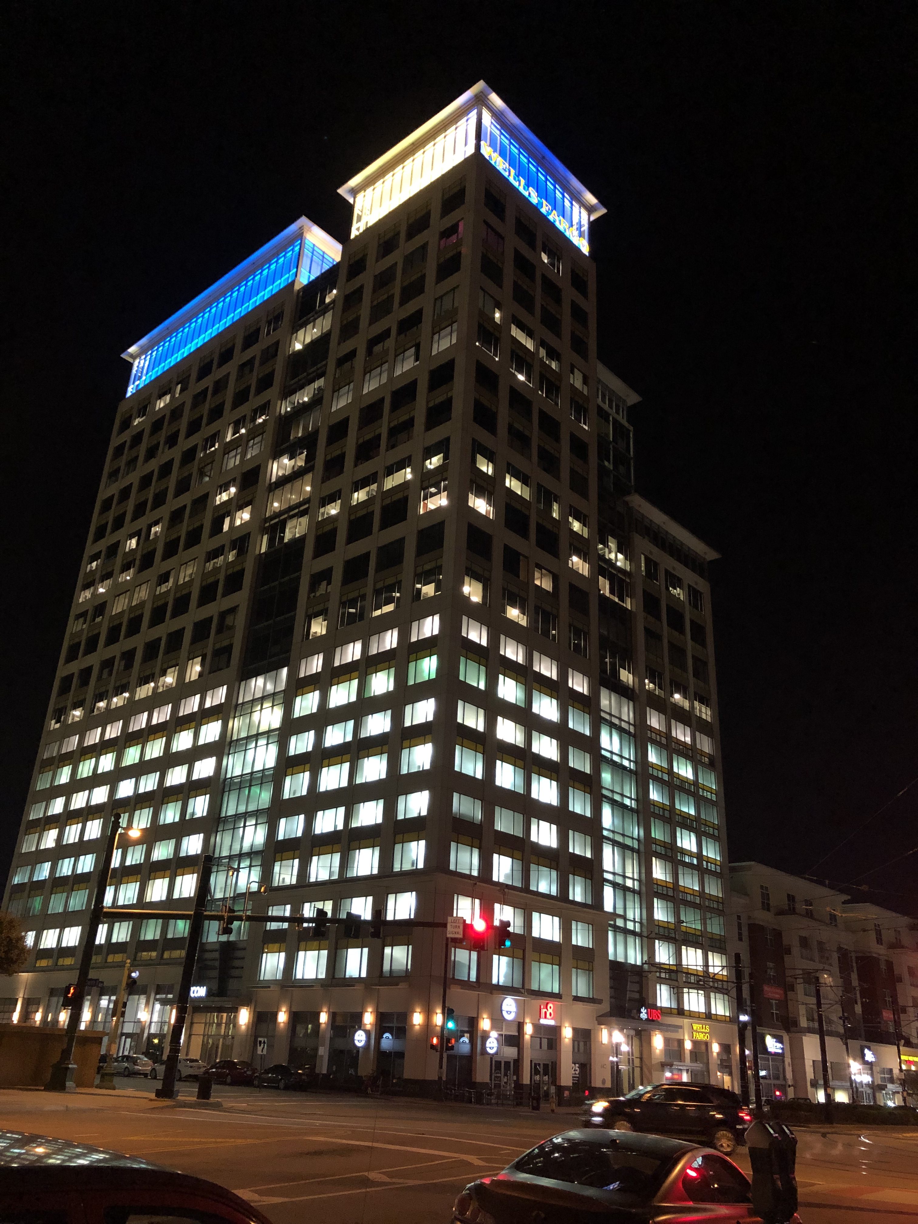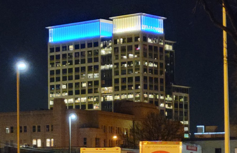 The Wells Fargo building in Norfolk was also seen lit up Wednesday night with blue and yellow.