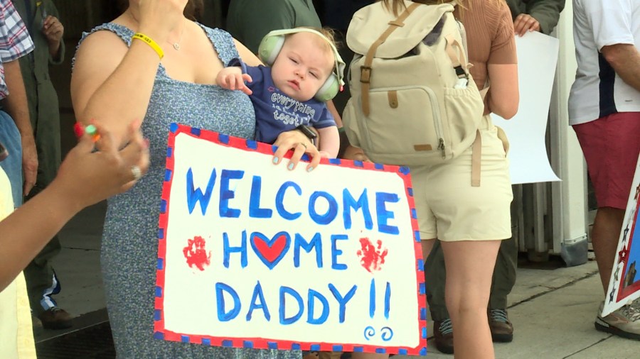 NORFOLK, Va. (WAVY) — A weekend full of homecomings for the USS Dwight D. Eisenhower Carrier Strike Group kicked off Friday morning at Naval Station Norfolk with a handful of the more than 6,500 sailors returning after a nine-month deployment supporting Operation Prosperity Guardian.
