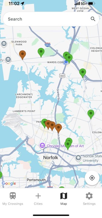 When trains begin to cross the road, the map on the app goes turns color from green to orange to indicate the crossing is now blocked. Once the train clears, the crossing indicator on the app will turn back to green.