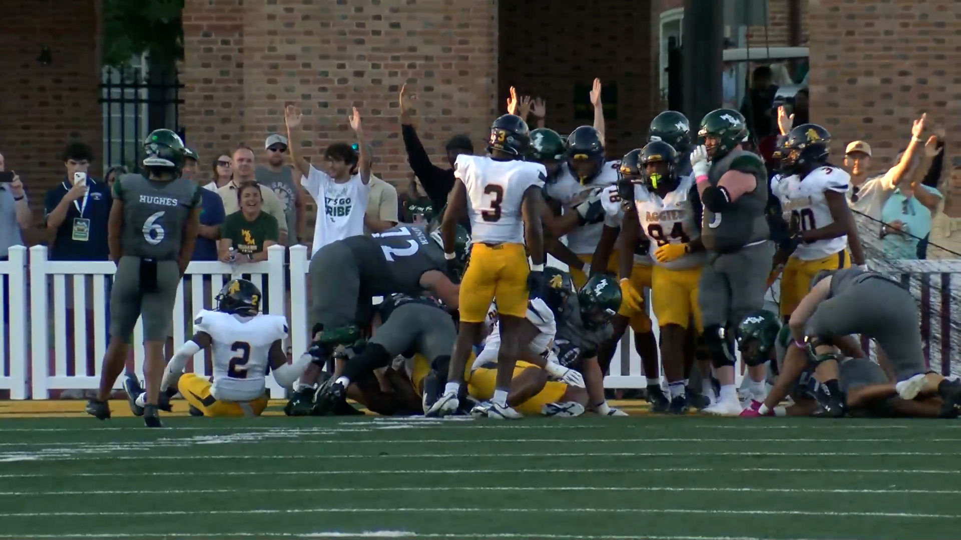 The Tribe’s first half points came on a 4-yard scoop and score by linebacker Clayton Dobler on a fumble by NC A&T’s punter forced by linebacker Stephon Hicks and a 29-yard touchdown pass from Hughes to tight end Sean McElwain.