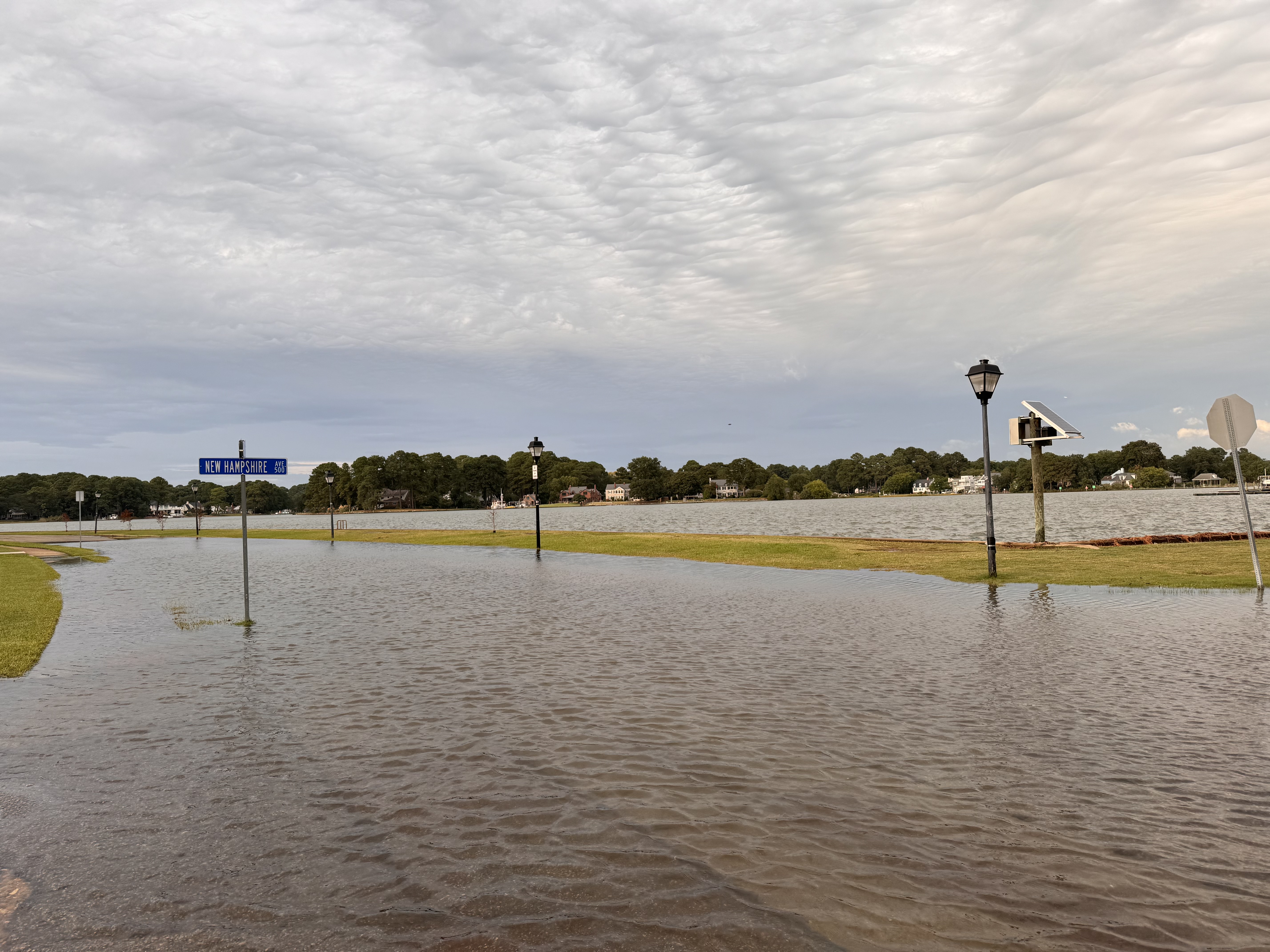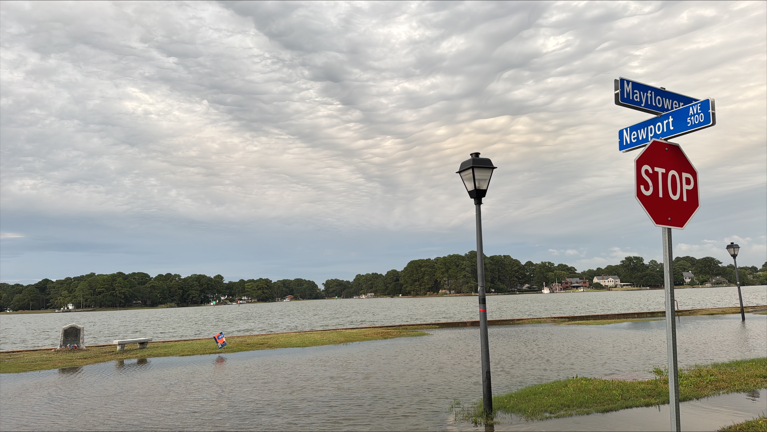 Video of flooding in the area of New Hampshire Avenue and Mayflower Road around 6:45 p.m. Monday, Sept. 15 (WAVY video – Jane Alvarez-Wertz)