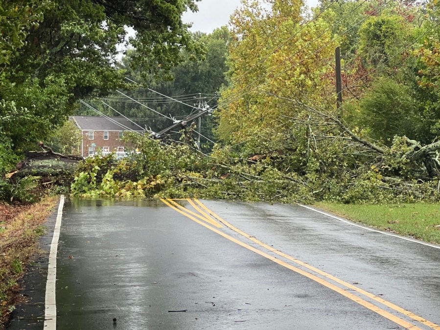 A tree fell and took power lines down with it, in the 4200 block of Twin Pines Rd. in Portsmouth. A WAVY photographer took this photo of the scene.